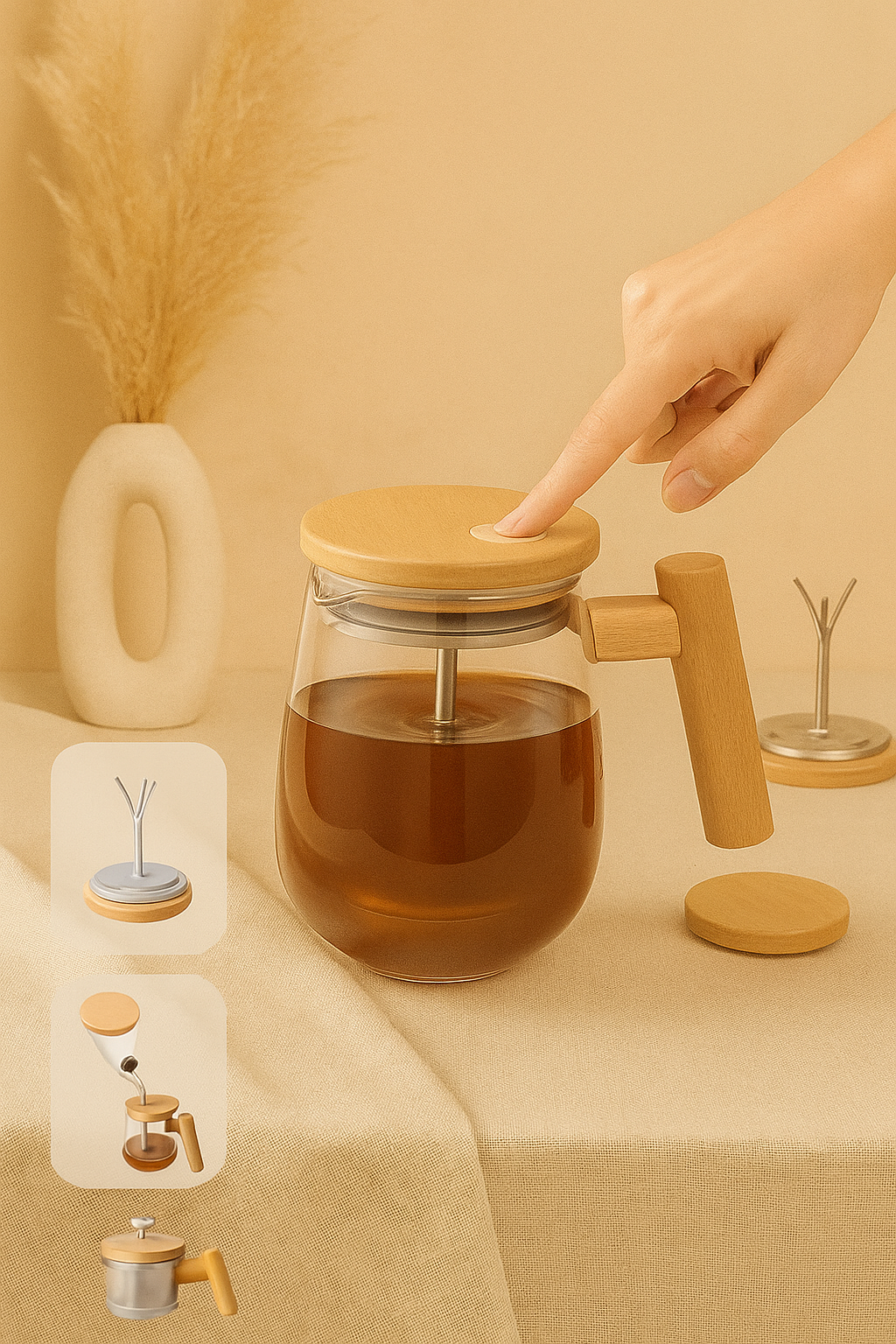 1 × Self-stirring coffee mug (glass) 1 × Magnetic stirrer base 1 × USB charging cable