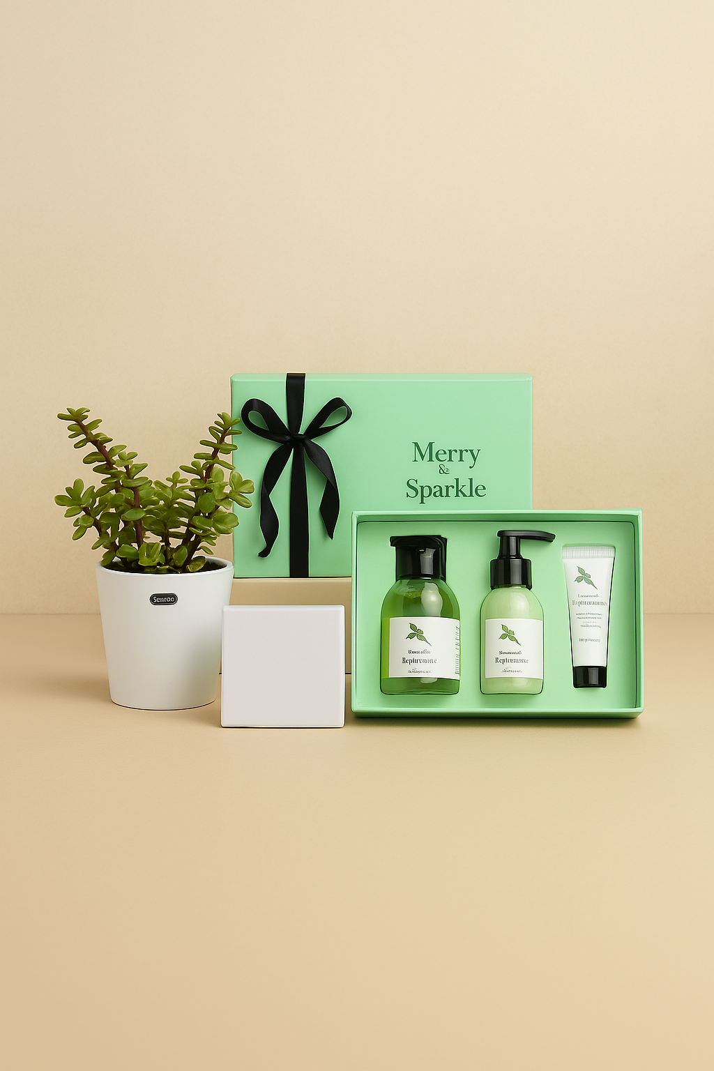A refreshing skincare experience infused with natural mint extracts. Designed to energize, uplift, and cool the skin, this kit is perfect for professionals juggling high-paced workdays. It's a thoughtful Women’s Day or wellness gift for teams.